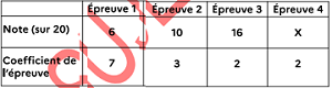 19 – Un élève présente un examen composé de 4 épreuves. Il obtient les notes suivantes aux trois premières épreuves :