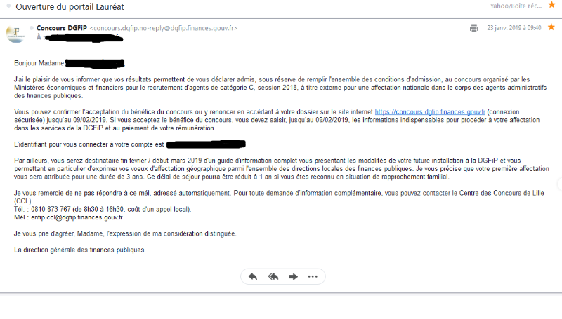 petite question supplémentaire, si on est pas admis, on reçoit un mail aussi ?