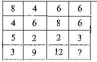 4eme ligne : 3 + 9 + 12 = 24 / 8 = 3