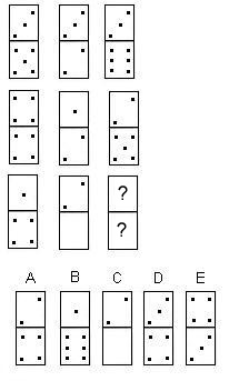 | Explication : Les dominos doivent être considérés en ligne. Le troisième domino est le résultat de l’addition des deux premiers, mais avec une inversion de la partie | ||||||||||||||||||||||||||||||||||||||||||||||||||||