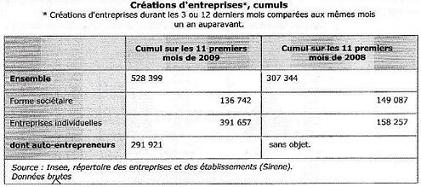 À partir du tableau ci-dessus, les créations d'entreprise ont augmenté entre 2008 et 2009