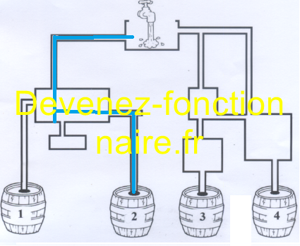 je fais mention de cet argument car il peut se justifier, mais je n'y adhére pas totalement car le piège venait (pour moi) de la hauteur de sortie du premier bac (je l'ai regardé vite fait et si j'avais été "à la bourre", j'aurai répondu 3 MAIS après relecture j'ai vu la sortie moins haute du coté gauche.