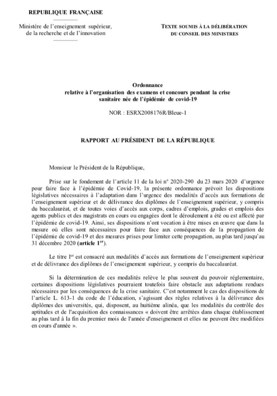 newtiti37 écrit: L'ordonnance relative à l’organisation des examens et concours pendant la crise sanitaire née de l’épidémie de COVID19 est tombée.