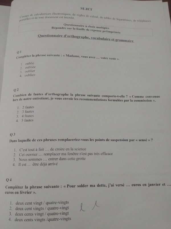 Je ferai un corrigé détaillé du QCM lorsque celui-ci sera mis en ligne...