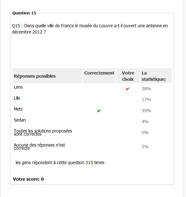 S'il s'agit bien de l'antenne du Louvre elle se situe à Lens. C'est une antenne du Pompidou qui se trouve à Metz. Or il me met une mauvaise réponse